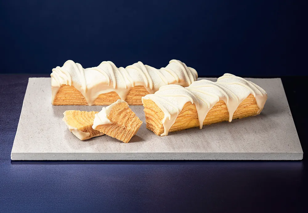 バームクーヘンの外はカリッとした香ばしさと、ホワイトショコラの濃厚なミルクの香りが溶け合う至福の瞬間をどうぞ♪